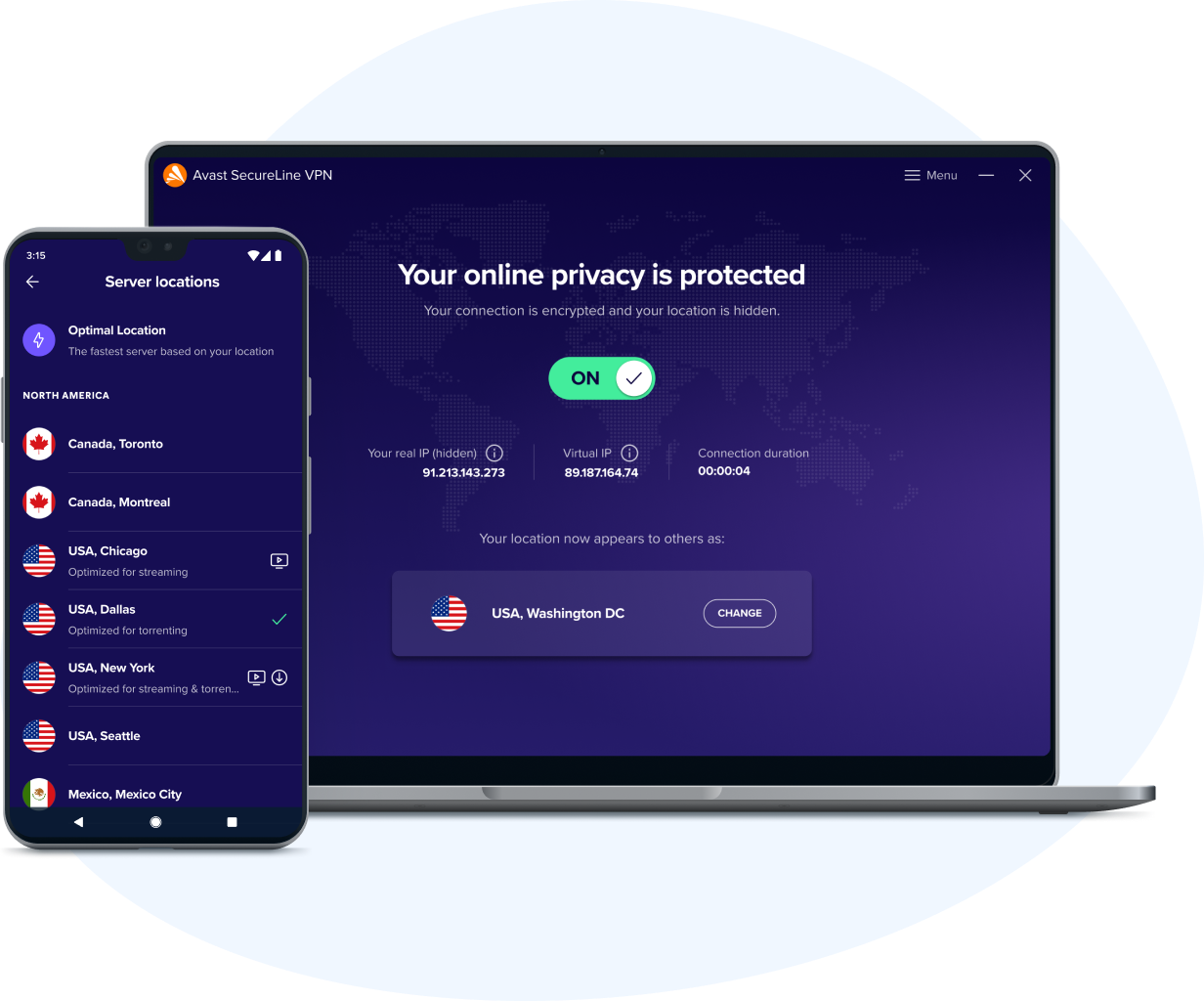Упростите блокировку попыток интернет-провайдеров следить за вашими действиями в сети, обходите географические ограничения поставщиков контента и сделайте подключение к общедоступным сетям Wi-Fi более безопасным, используя виртуальную частную сеть (VPN) от Avast.