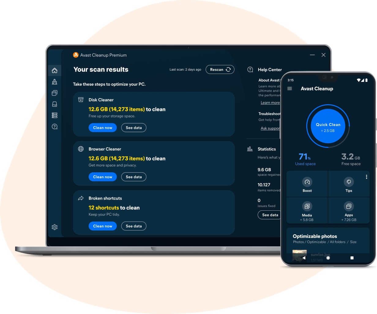 Верните себе гигабайты места на диске и сделайте устройство таким же быстрым, как после покупки, удалив ненужные файлы, оставшиеся после удаления программ, ресурсоемкое бесполезное ПО и нежелательные приложения. Кроме того, Avast Cleanup будет автоматически обновлять ваши программы, переводить требовательные к ресурсам приложения в спящий режим... И это далеко не все!